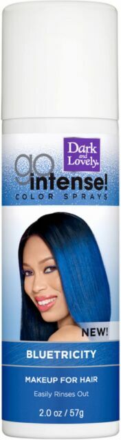 100 Percent Color Impact with No Commitment and Lasts Up to 1 Shampoo. PRETTY IN PINK tints your world a rosy shade of fierce. Dark and Lovely go intense color sprays blue Bombshell temporary hair dye - vivid makeup for hair that Pops on even the darkest shades go intense color sprays works immediately as a temporary hair color spray for instant ultra-vibrant color 100 percent Color impact no commitment lasts up to 1.