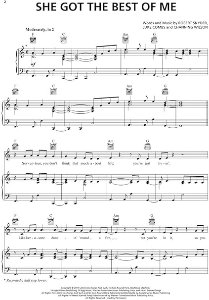 Intro D A Fm E D A Fm E Verse 1 D A Fm Seventeen you dont think that much about life E You just live it D A Fm Like kerosene dancing around a fire E But youre in it Pre-Chorus D A So you jump right in D A Aint afraid to fall E And you give it all Chorus D A She got the best of me Fm E She broke my heart D A Now all thats left. E A D Gm C Fm A F Am F G B Bm Chords for Luke Combs - She Got the Best of Me with capo transposer play along with guitar piano ukulele mandolin. You can correct strumming pattern in tab add new or correct current and submit changes.