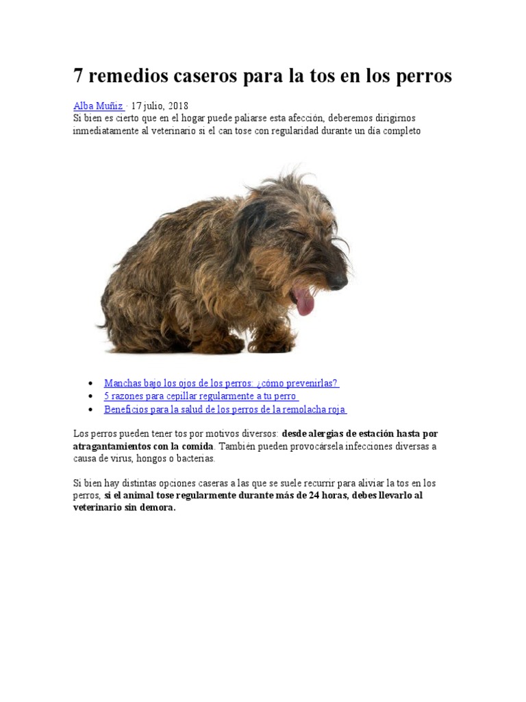 De todas formas recuerda que hay muchos motivos por los que tu perro puede tener tos. La tos en perros causada por este tipo de anomalía genética es muy común en perros de razas pequeñas como el Pomerania y el Yorkshire. Los remedios caseros funcionan mejor para los perros que tienen una tos leve y ningún otro síntoma preocupante. Nunca le des algo al perro sin saber si puede o no. Administrarle vitaminas a tu perro hará que su sistema inmune se fortalezca y pueda combatir mejor la tos de las perreras. Esto puede suceder por varios motivos desde alergias estacionales o por atragantarse con un pedazo de comida. Aceite de coco para perros.
